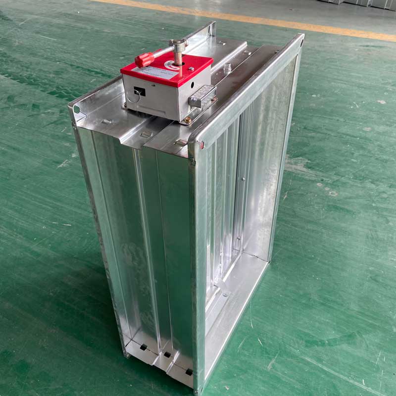 排煙防火閥一般安裝在排煙系統(tǒng)的風(fēng)管上,平時(shí)常閉,發(fā)生火災(zāi)時(shí)煙感探頭發(fā)出火警信號(hào),控制中心通過DC24V給閥上電磁鐵,使閥門打開,或人手動(dòng)打開閥門進(jìn)行排煙,當(dāng)煙道溫度達(dá)到280℃時(shí)自動(dòng)關(guān)閉,手動(dòng)復(fù)位。