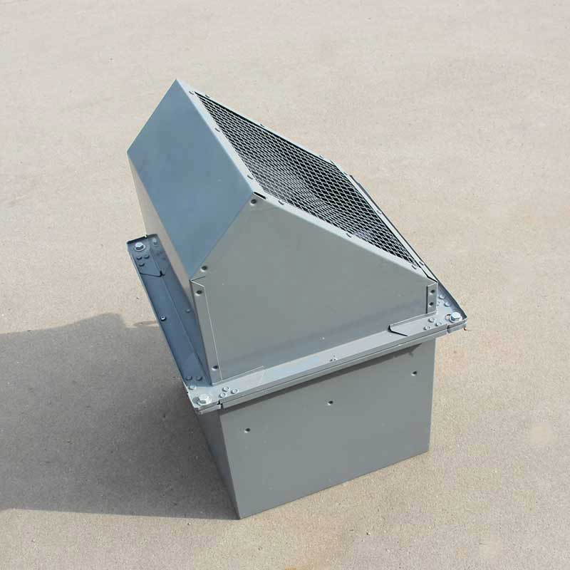 WEX(DWEX)系列風機一般用于邊墻壁式排風,配設45°防雨罩(或特殊制造成60°)和防蟲網(夜間可防止昆蟲循燈光飛入車間)。可按需要制成邊墻送風機型號為DWSP(WSP),配設90°防雨罩